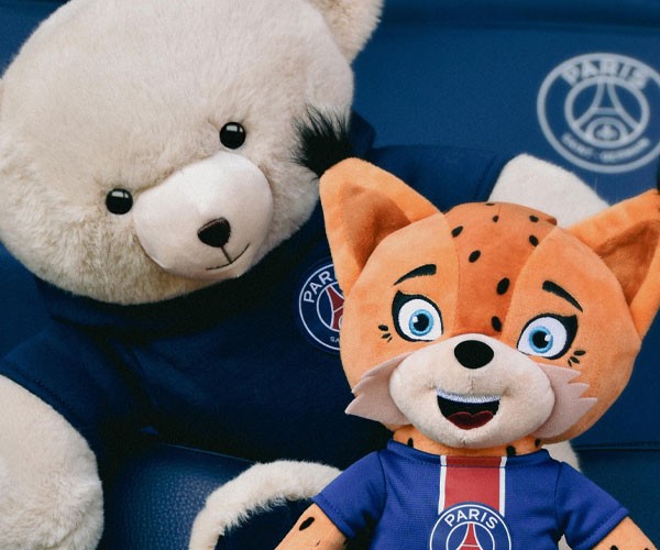 Découvrez les peluches Paris Saint-Germain : l’ours supporter passionné, la mascotte emblématique et des compagnons aux couleurs du club. Faites entrer la magie du PSG chez vous !