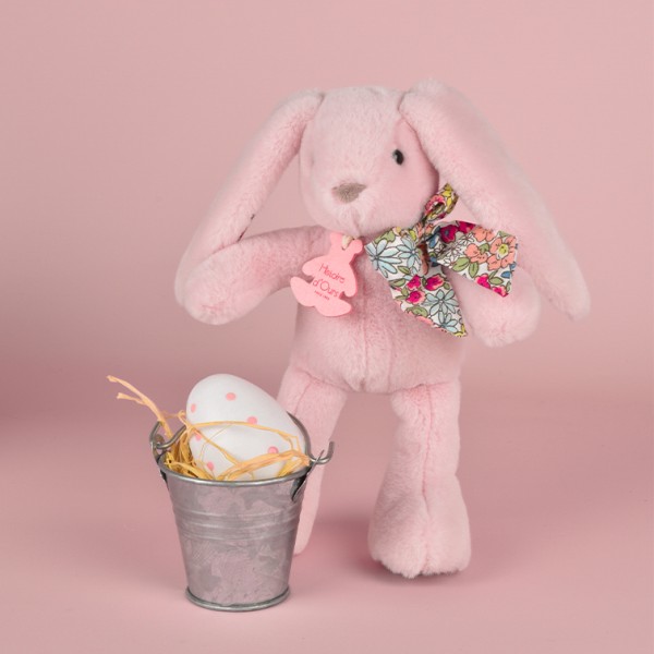 Un nouveau copain dans la famille des Copains Câlins : d'un beau rose poudré associé à un joli imprimé floral, ce Lapin en peluche souple aux longues oreilles promet douceur et séduction pour petits et grands.