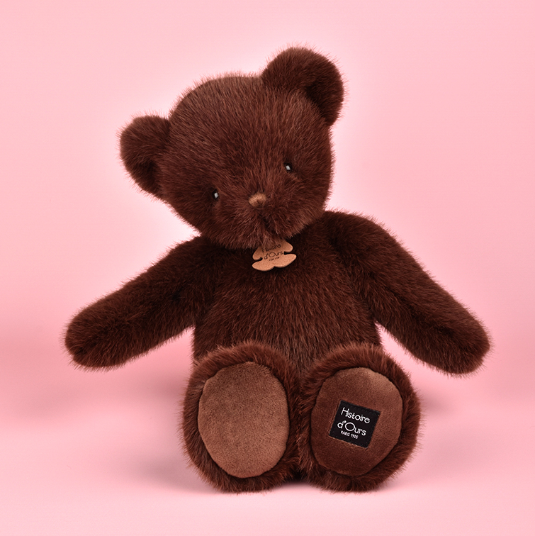 Le format 38 cm de l'Ours Clémentin est un compagnon idéal, facile à transporter. Sa couleur marron chocolat est élégante et réconfortante.