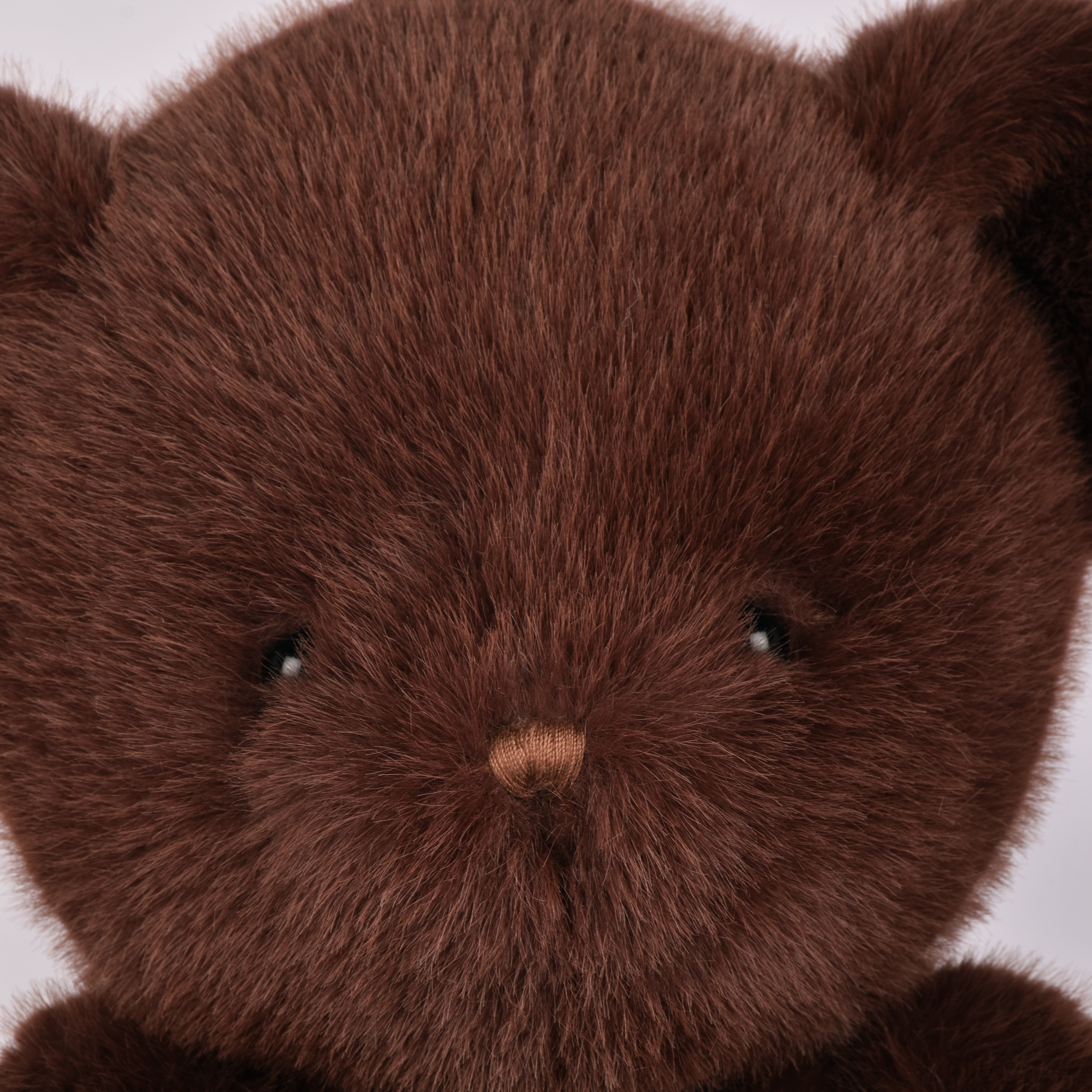 Avec 60 cm de tendresse, Clémentin est conçu pour les câlins géants les plus réconfortants. Son pelage marron chocolat offre un toucher soyeux exceptionnel. Son regard attendrissant lui confère une présence rassurante et douce, faisant de lui un ami pour la vie. Ce format est le cadeau d'exception idéal.