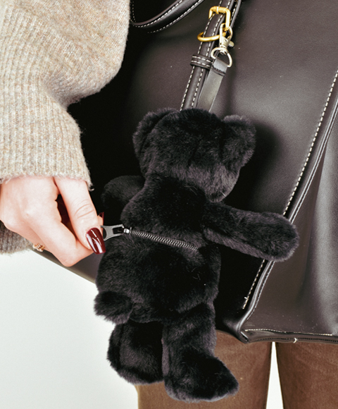 Doux, tendance et plein de charme, cet ours en peluche noir  est un véritable bijou de sac qui affirme votre style.