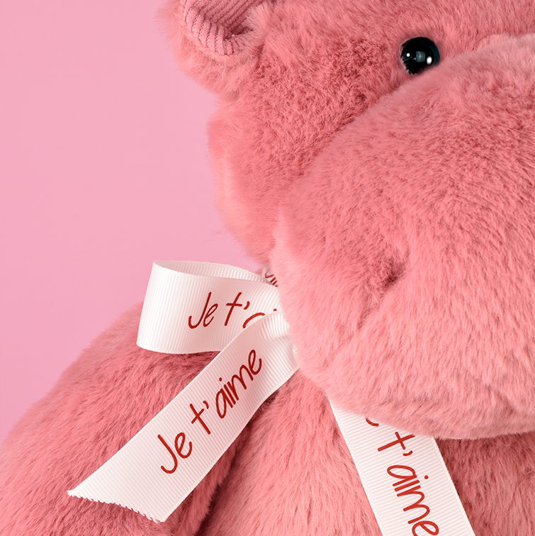 Cet hippopotame personnalisé avec son ruban "Je t'aime" est le cadeau idéal pour la Saint-Valentin !