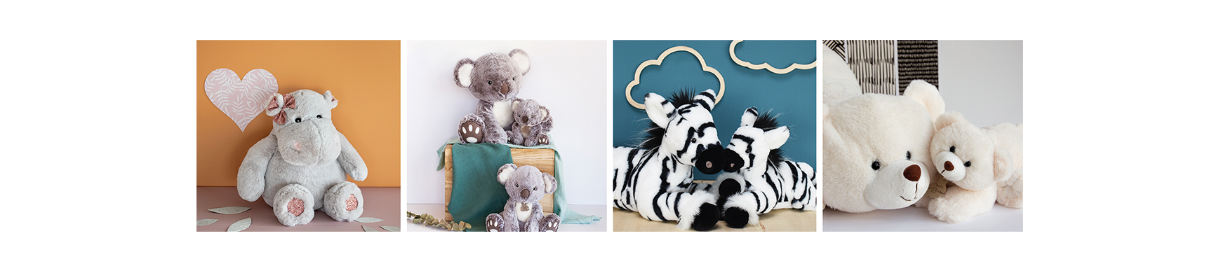 Un cadeau de naissance à faire ou envie d'offrir un présent de qualité à vos proches ? Découvrez toutes nos idées cadeaux. Les Ours en peluche occupent une place de choix dans nos Collections et se déclinent à l’infini...  Un monde féerique est aussi présent avec des personnages sortis tout droit de l’imagination de nos stylistes. À l’image de notre Hippo, produit phare de notre collection : une bouille ronde, des petites oreilles à attraper, et des grosses pattes toutes souples…Cet hippopotame tout moelleux donne envie aux enfants de le cajoler pendant des heures et pourquoi pas de devenir un ami pour la vie !